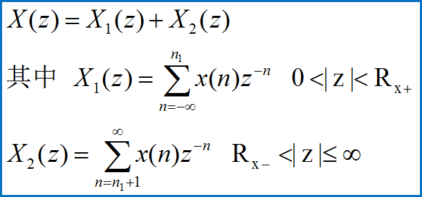 x(n)可看作左序列和右序列之和,其Z变换为: