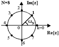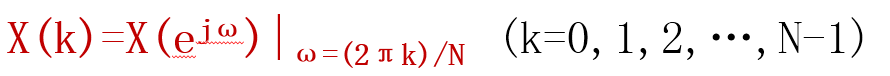 在单位圆上均匀取样,将0~2π等分为N点,第k点频率ωk=(2πk)/N,则: