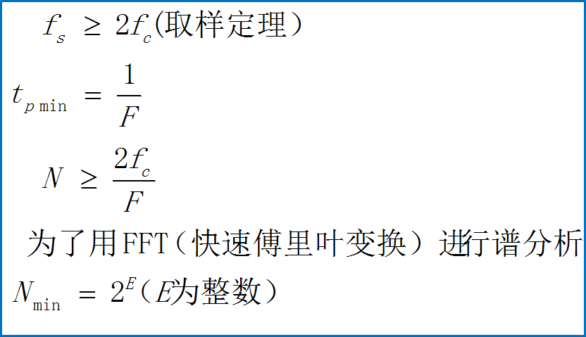 对实信号进行谱分析, 要求谱分辨率F≤10Hz,信号最高频率fc=2.5kHz,试确定:最小记录时间tPmin,最大的采样间隔Tsmax,最少的采样点数Nmin。