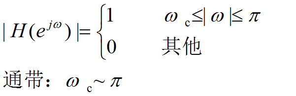 包括:低通、高通、带通、带阻滤波器。由频响特性|H(e jω)|描述。