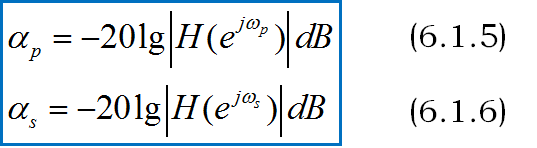 通带内和阻带内允许的衰减通常用分贝(dB)表示,通带内允许的最大衰减:αp,阻带内允许的最小衰减:αs。