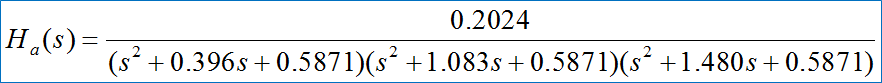 即:将p=s/Ωc代入Ha(p),得滤波器传输函数H(s)。