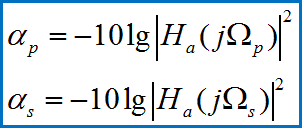 Ωp和Ωs分别为通带截止频率和阻带截止频率;αp是通带最大衰减系数,αs是阻带最小衰减系数。