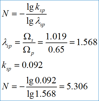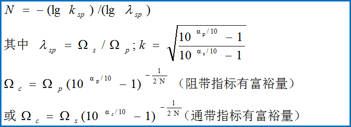 l根据技术指标Ωp,αp,Ωs,αs,求滤波器的阶数N和3dB截止频率Ωc。