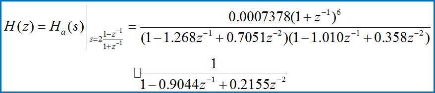 ④ 用双线性变换法将Ha(s)转换成数字滤波器H(z):