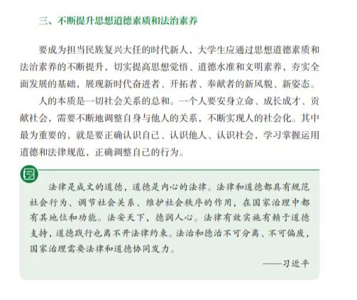 三、不断提升思想道德素质和法治素养