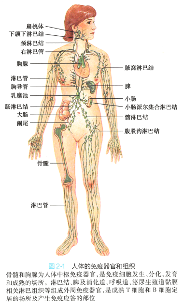 免疫系统(immune system) 是由免疫器官和组织、免疫细胞(如淋巴细胞、树突状细胞、NK 细胞、 单核巨噬细胞、粒细胞、肥大细胞等)及免疫分子(如免疫球蛋白、补体、各种膜分子及细胞因子等)组成,其主要作用是执行免疫功能。 本章重点介绍免疫器官和组织的结构与功能,免疫细胞和免疫分子 将在后续相关章节分别介绍。