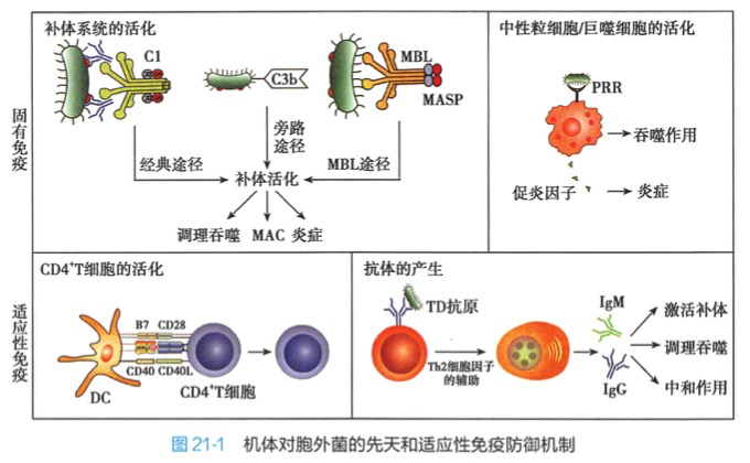 抗胞外菌的固有免疫应答主要基于补体活化、吞噬作用和炎症反应。