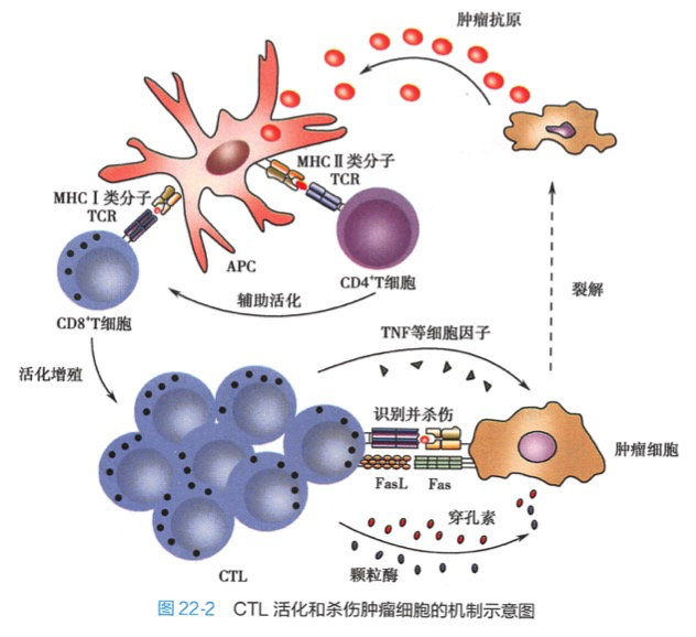 CTL主要通过两条途径对突变细胞或肿瘤细胞进行特异性杀伤,一是穿孔素-颗粒酶途径,二是Fas-FasL 和TNF-TNFR途径或称死亡受体途径。