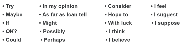 3 Are you using words that weaken the impact of your statements? Review your written and spoken words to audit your use of qualifiers: words that limit or qualify a word or phrase. Qualifiers minimize your words’ impact and undermine the strength of your message.