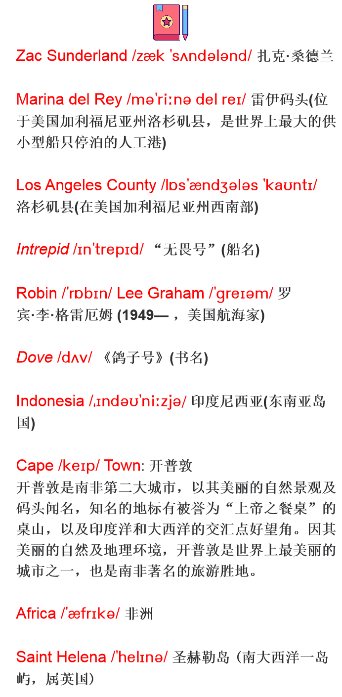 6 Zac’s trip was inspired in part by Robin Lee Graham’s book, Dove. In Dove, Graham describes his own five-year trip sailing around the world. He started his journey in 1965 at the age of 16.
