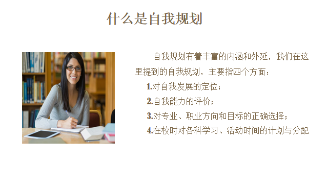 自我规划能力,是制定目标和计划,并通过实践不断调整自我选择、不断自我提高和最终完成计划和目标的能力。自我规划能力的提高,重在动态的实践检验和总结凝练提升。实践过程中既要有积极进取的精神和坚定的意志,也要有科学的方法和能力。需要注意的是,制定目标就是为了实现它,所以在制定目标的时候,要全面认识当今社会的发展趋势和自身的实际能力,适当听取老师、家长和同学的建议,制定的目标要符合自身的实际,实事求是。因此,提高自我规划能力是提高目标的制定能力和完成能力的有机统一。