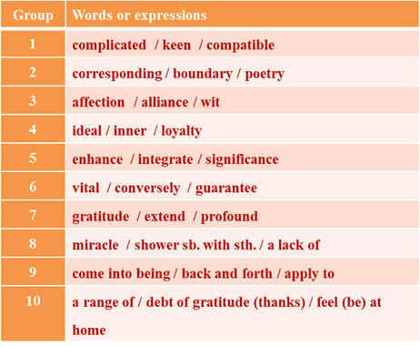 Work in groups to make word-posters using Powerpoint. For every task, each group is assigned 3 words or expressions which are included in Unit 8 (both Section A and B). Each word or expression takes just one ppt page. Try to make your examples and pictures helpful in explaining the meaning of the target words or expressions.