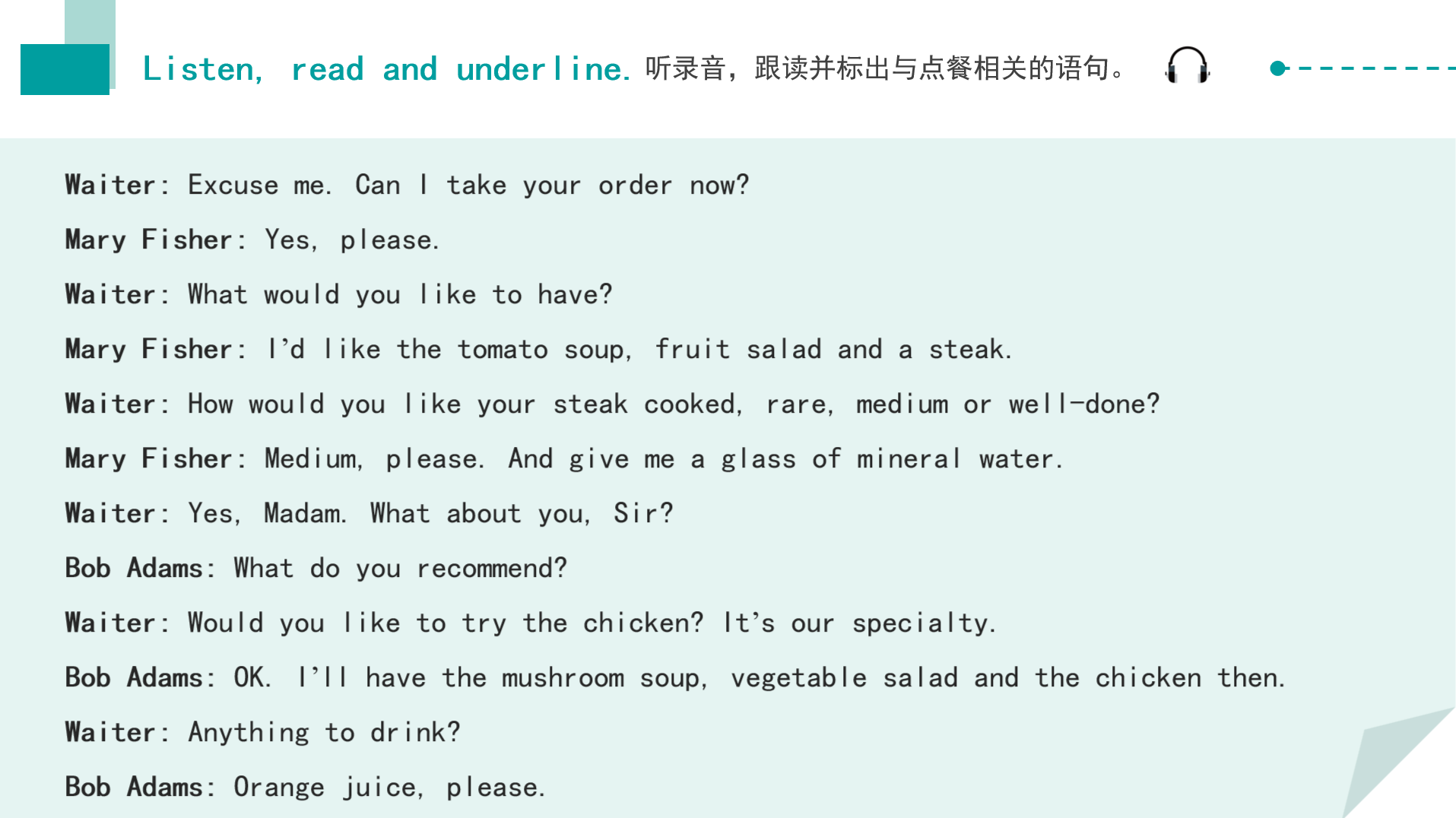(2) 聚焦问题:What food and drinks will you choose foryour dinner?
