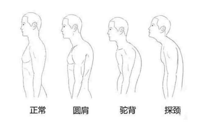 现代社会,由于工作学习环境的变化,伏案工作,低头看手机此类的不良体姿体态会造成圆肩驼背头前引(图1 )的上交叉综合征,以及骨盆前后倾的下交叉综合征。形成此类不良姿态后,会引起颈肩腰腿疼痛等一系列的病症出现。我们可以通过对肩部相关紧张肌肉进行放松,薄弱肌群进行肌力加强的思路来进行运动干预,从而达到预防与纠正此类体姿体态的效果。