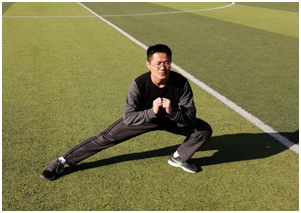 侧步蹲不单纯是腹股沟拉伸,侧步蹲可视为一个动态柔韧性练习,旨在提高髋关节在额面的活动范围。开始时双脚分开,并蹲向右侧,保持左腿伸直,左脚平放(。下蹲要尽量低,身体要尽可能挺直,重心放在负重脚脚后跟上,保持1-2秒,然后移动到对侧。