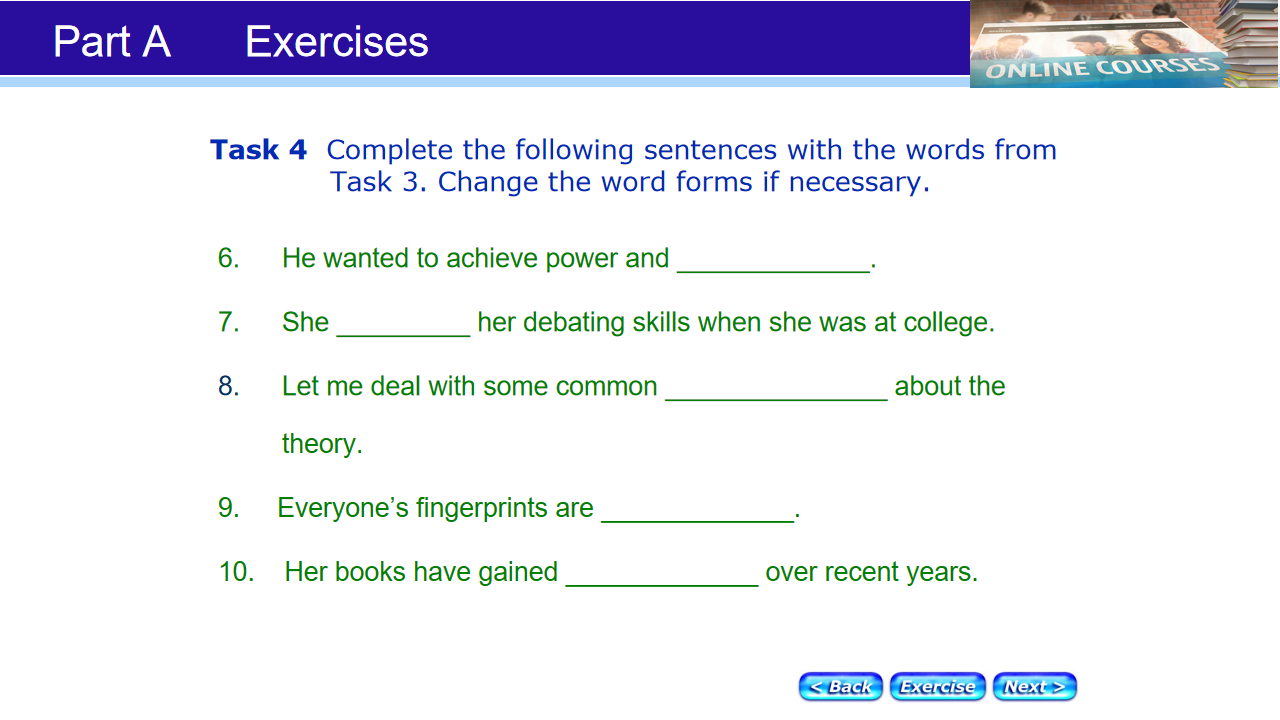 Task 4 Complete the following sentences with the words from Task 3. Change the word forms if necessary.