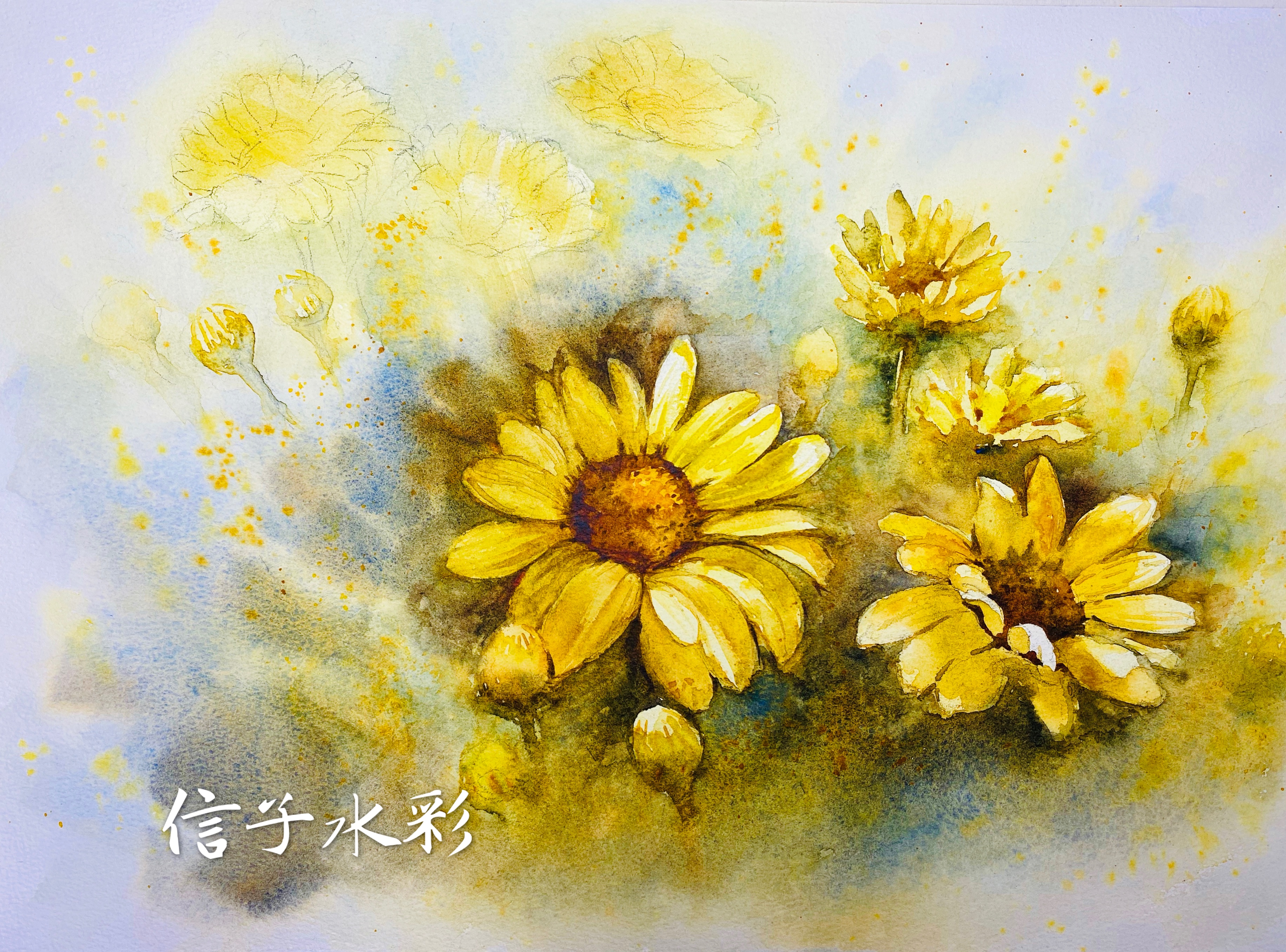 黄橙、红色系花卉写生