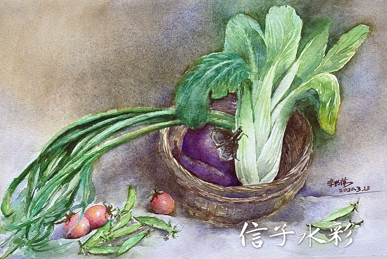 叶菜类蔬菜组合写生——青菜、蒜苗等组合