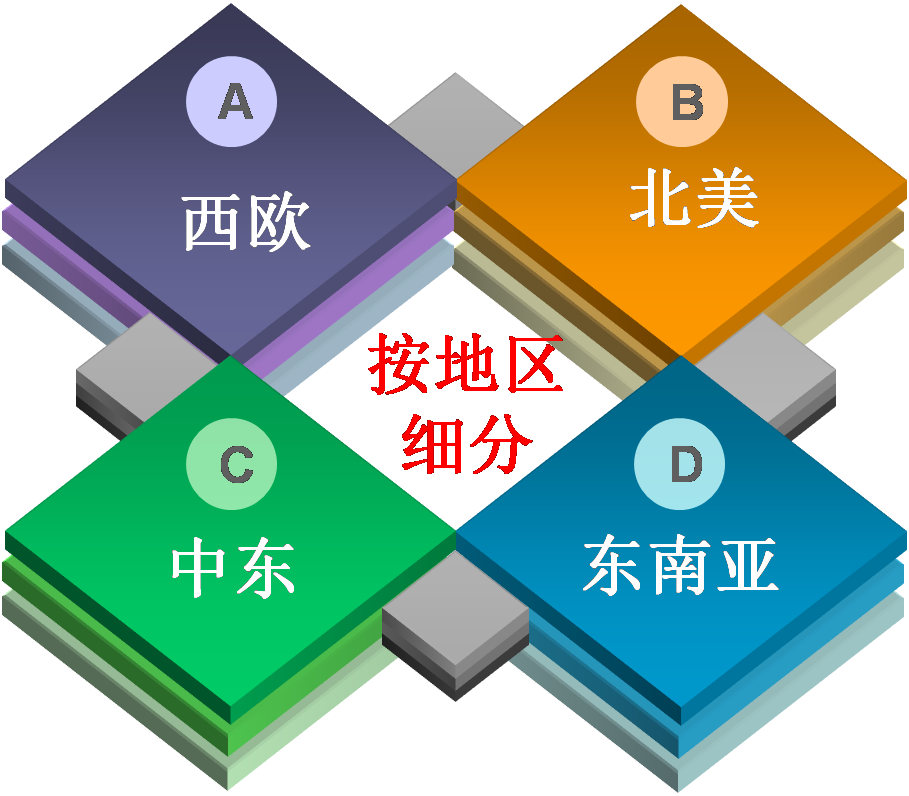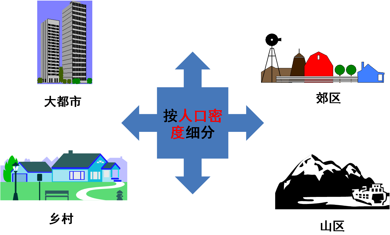根据国家、地区、城市规模、气候、人口密度、地形地貌等方面的差异将整体市场分为不同的小市场。