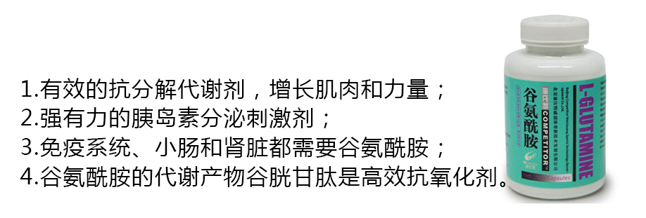 3.谷氨酰胺是机体强有力的胰岛素分泌刺激剂,能最大限度地促进肌肉增长,同时可使运动员赛前增强免疫力。