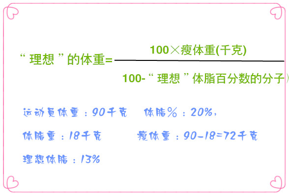 ♥ Lamb建议可通过确定“理想”的体脂百分比方法确定“理想”体重,