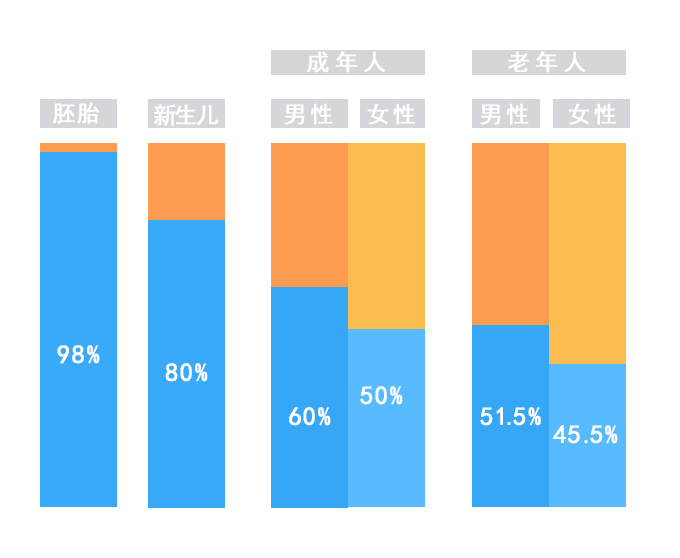 水在体内的含量与年龄及性别有一定关系。各组织器官的水含量相差很大,以血液中最多,脂肪组织中较少。