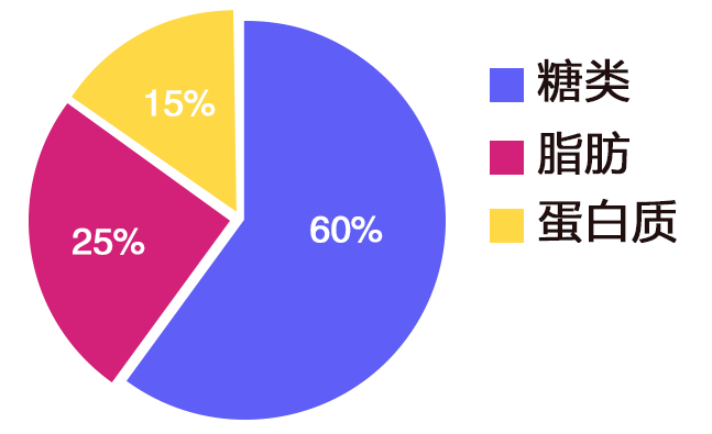 蛋白质10%~15%,脂肪20%~30%,糖55%~65%。