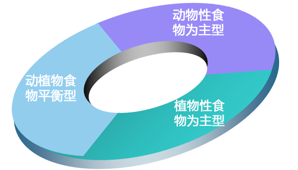 以日本为代表。膳食中动物性食物与植物性食物比例比较适当。