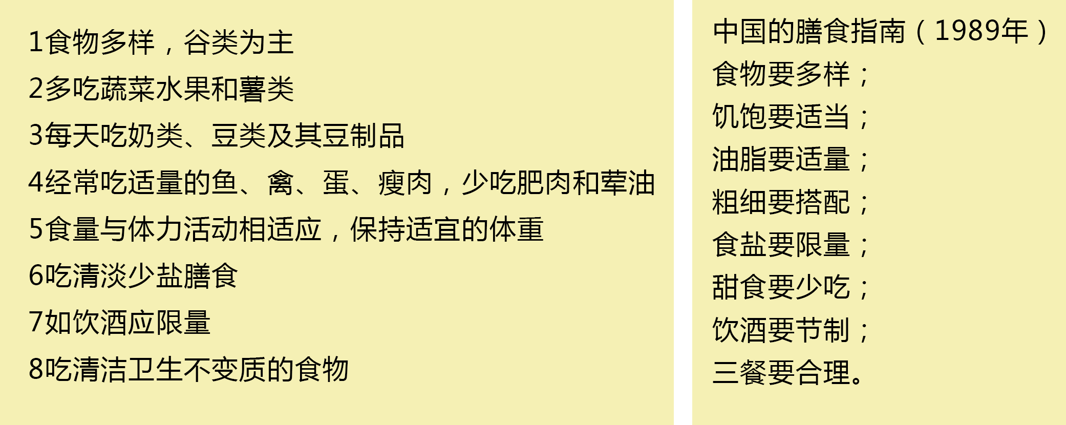 膳食指导方针或膳食目标,是各国营养机构针对本国存在的营养问题而提出的一个通俗易懂、简明扼要的合理膳食基本要求。