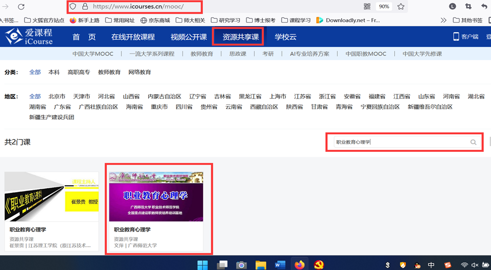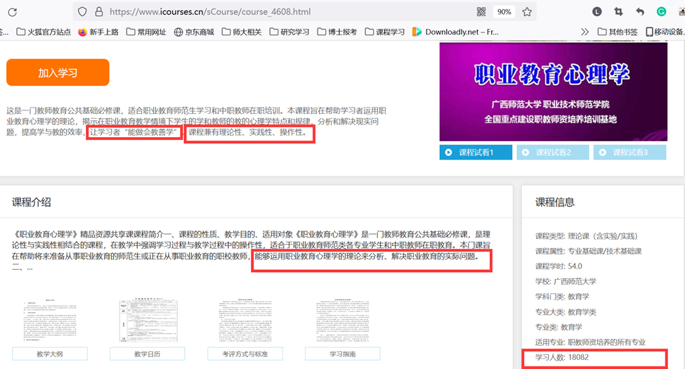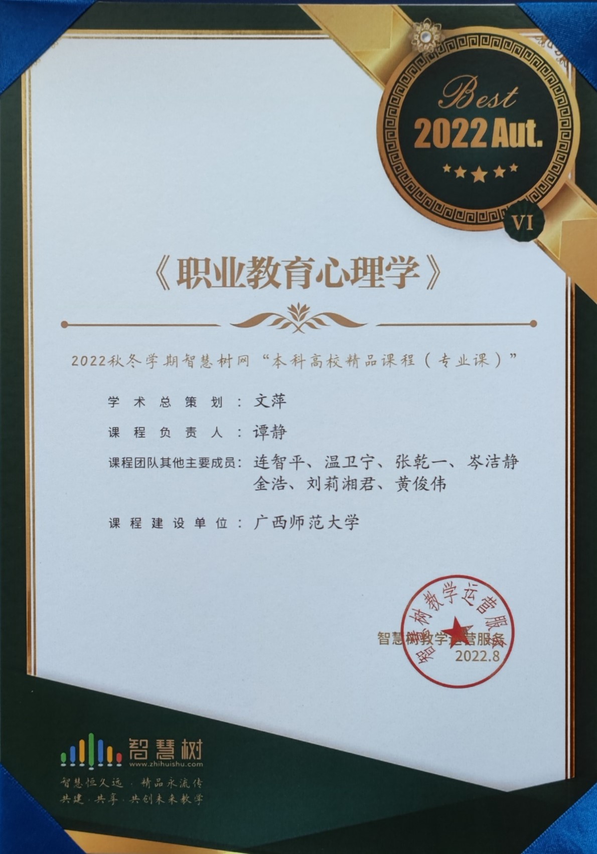 1.《职业教育心理学》国家精品资源共享课程平台;