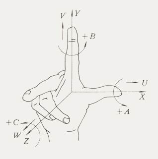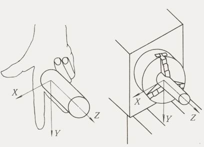 B、标准:右手笛卡儿直角坐标系——拇指为X向,食指为Y向,中指为Z向。如图1所示: