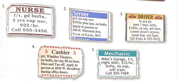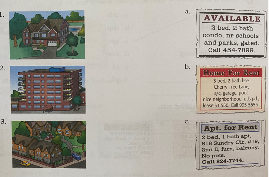 任务二:阅读分类广告与图片匹配,并注意广告体的英语表达