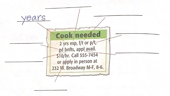 任务六:阅读下列分类广告,并用方框内的词填写广告中的简写词