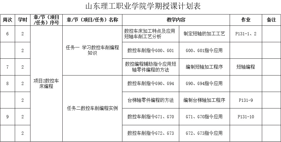 6.1 授课计划表项目6岗前课程思政与数控岗位职业素养培育