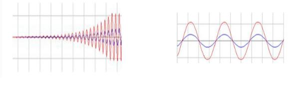 考虑到起振条件AuF > 1, 一般应选取 RF略大2R1。如果这个比值取得过大,会引起振荡波形严重失真。由运放构成的RC串并联正弦波振荡电路不是靠运放内部的晶体管进入非线性区稳幅,而是通过在外部引入负反馈来达到稳幅的目的。