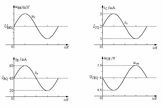 ic、ib、ube三者同相,uce与它们的相位相反。即输出电压与输入电压相位是相反的,这是共发射极放大电路的特征之一。