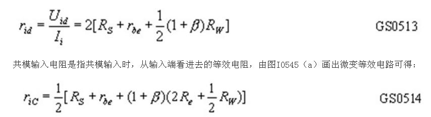 差动放大电路的差模输入电阻是指差模输入时,从两输入端看进去的等效电阻,由微变等效电路即可求得:
