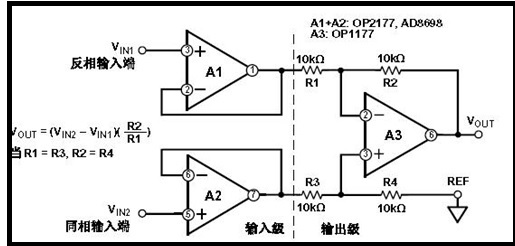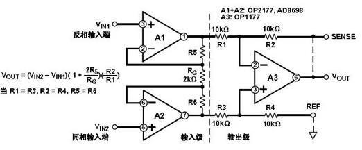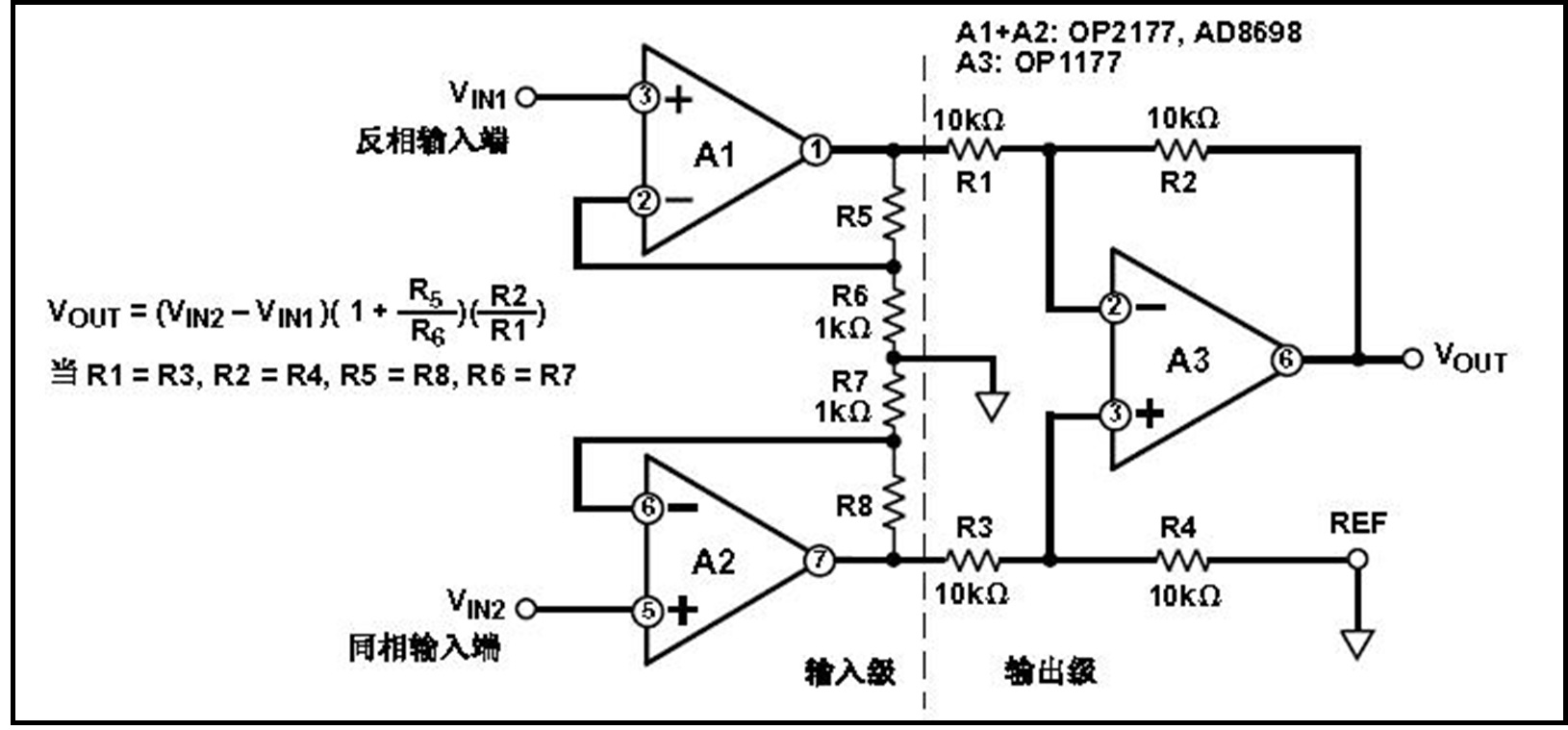 最后,由于结构上的对称性,输入放大器的共模误差,如果它们跟踪,将被输出级的减法器消除。这包括诸如共模抑制随频率变换的误差。上述这些特性便是这种三运放结构得到广泛应用的解释。