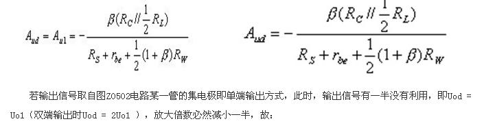 设单管放大电路的放大倍数为Au1、Au2,由于电路对称,Au1=Au2 ,则差动放大电路的输出电压为: