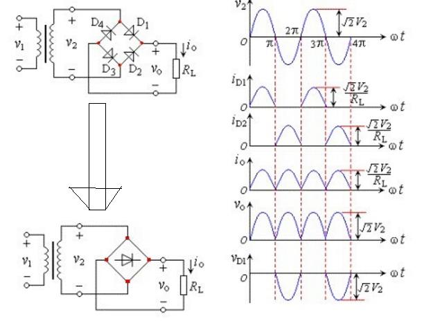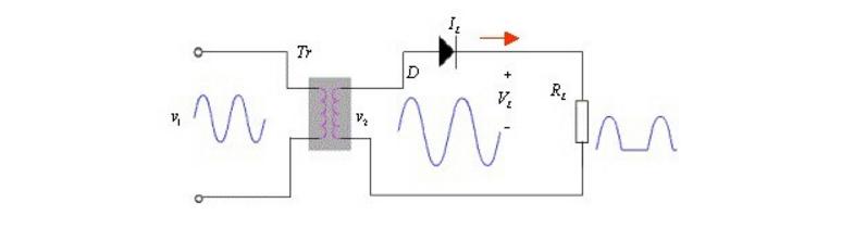 半波整流就是利用二极管的单向导电性能,使经变压器出来的电压Vo只有半个周期可以到达负载。
