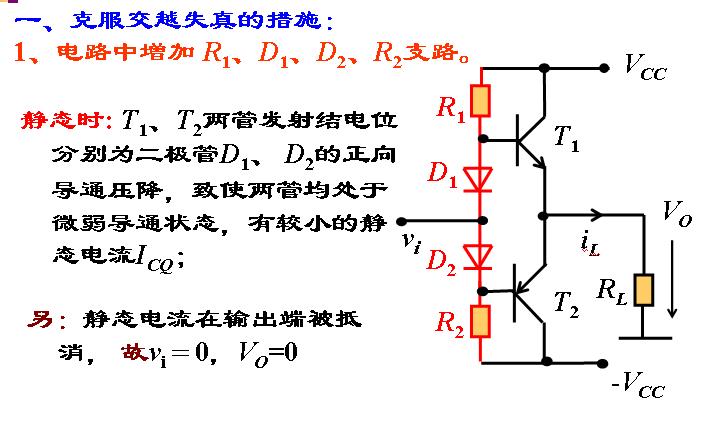 | 课程总结 | 甲乙类互补对称电路重可以对乙类互补对称电路的交越失真进行改进。可以通过复合管提高功率电路电压或电流放大倍数 |