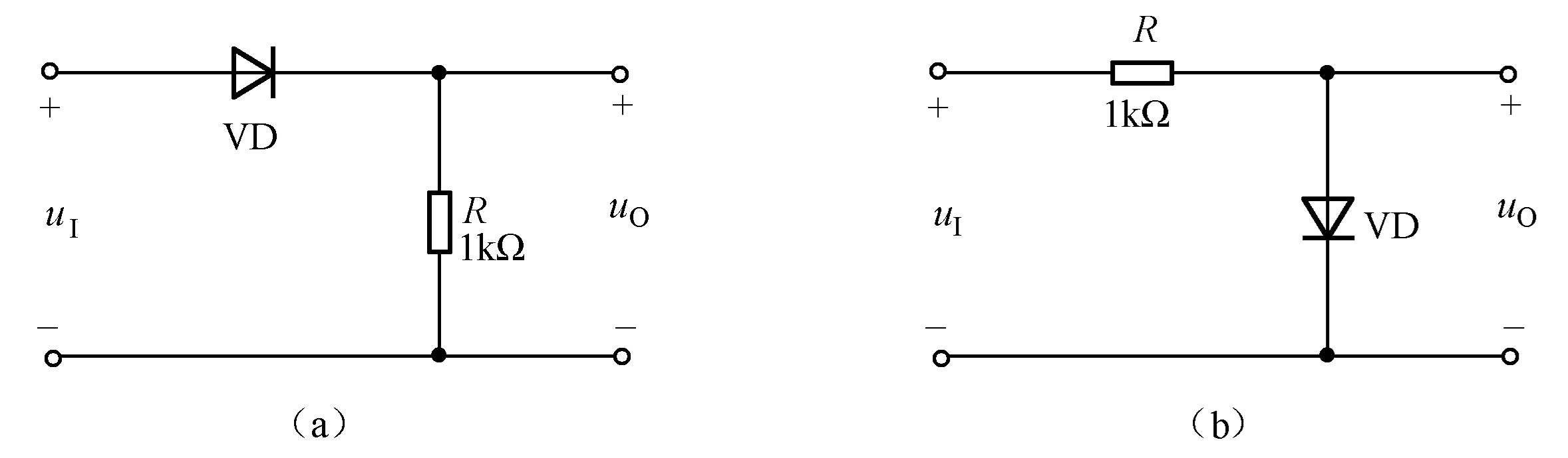 2、在图所示电路中,设二极管为理想的,且uI =5sinw t (V)。试画出uO的波形。