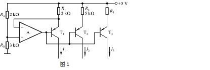 56、电路如图1所示,T1、T2和T3的特性完全相同,则I2≈ 0.4 mA,I3≈0.2mA,则R3≈ 10 kΩ。