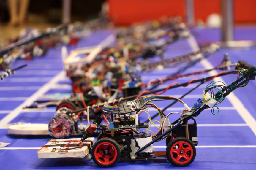 比赛规则:组委会提供一个标准的汽车模型、直流电机和可充电式电池,参赛队伍要制作一个能够自主识别路径的智能车,在专门设计的跑道上自动识别道路行驶,最快跑完全程而没有冲出跑道并且技术报告评分较高为获胜者。其设计内容涵盖了控制、模式识别、传感技术、汽车电子、电气、计算机、机械、能源等多个学科的知识,对学生的知识融合和实践动手能力的培养,具有良好的推动作用。