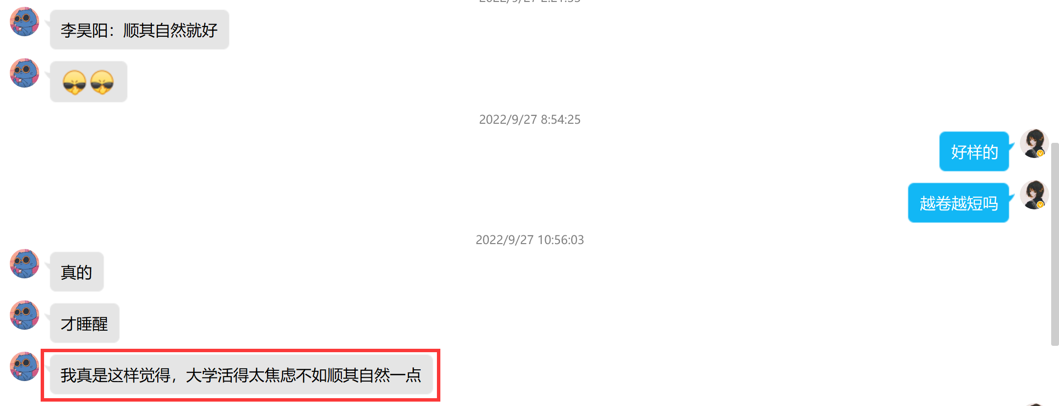作为刚进入大学的你们一定对大学生活充满好奇和向往,但别浪费时光。你们要学会抓住机会,有些重要机会错过了会导致你错过更多的机会。另外,虽然你们才大一,看起来离毕业还很远,但这个时候也需要为未来做规划。无论之后是考研还是就业,这些问题不是非要留到大三大四才该考虑的问题,而是从大一开始就该明确目标并为之努力的,这手上才有更多的砝码。