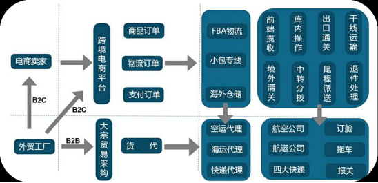 物流指的是供应链范围内企业之间的物资(原材料、中间库存、最终产品等)和相关信息的有效转移活动(不包括企业内部的生产活动)。物流管理(Logistics Management)是企业以合适的物流成本达到令用户满意的服务水平,对正向及反向的物流过程及相关信息进行的计划、组织、协调与控制。现代企业的物流管理已经把采购与分销两个为生产服务的领域统一在一起,形成物流供应链,供应链管理实际就是物流管理的延伸和扩展。如果从社会大范围的角度看,物流可以理解为所有为最终消费者提供商品和服务的活动网络,是供应链中的实体流动部分,供应链没有否定物流,只是物流发展的更高阶段。跨境供应链管理是国际物流的基础,有完整流畅的供应链管理才有顺利成功的国际物流。