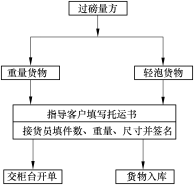 接货过磅时要注意轻拿轻放,切忌丢货、扔货、抛货。准确过磅,正确地在托运书中填写件数、重量,如果重新打了包装,要填写打过包装后的重量,并注明所打包装(方便柜台人员收取费用),再签上自己的名字,协助客户填写托运书,如属轻泡货物,则在托运书上注明。将填写好的托运书交给柜台开单员。