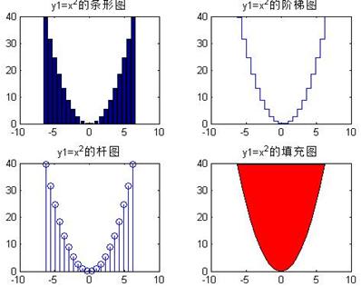 (2)分别用条形图、阶梯图、杆图和填充图绘制三条曲线。
