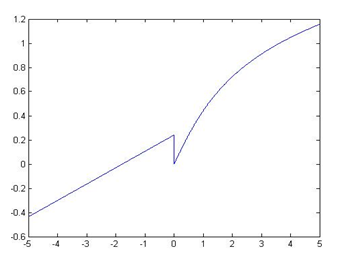 y=(x+sqrt(pi))/exp(2).*(x<=0)+1/2*log(x+sqrt(1+x.^2)).*(x>0)